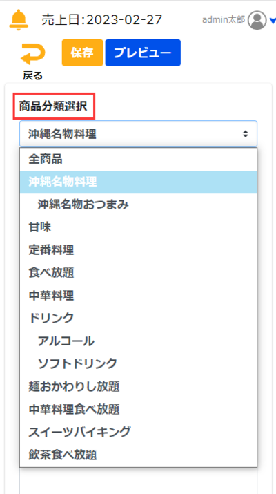 ②「商品分類選択」してください。