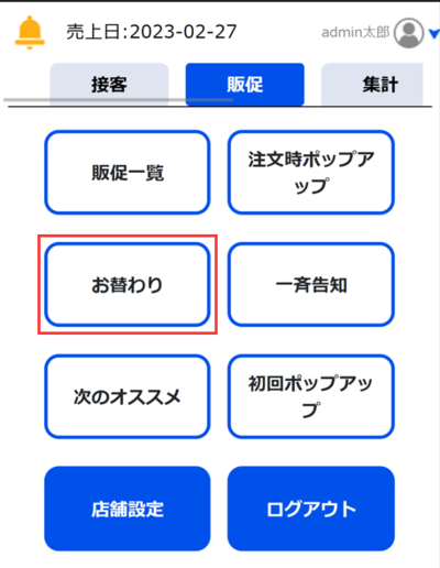①販促タブから「お替わり」を選択します。