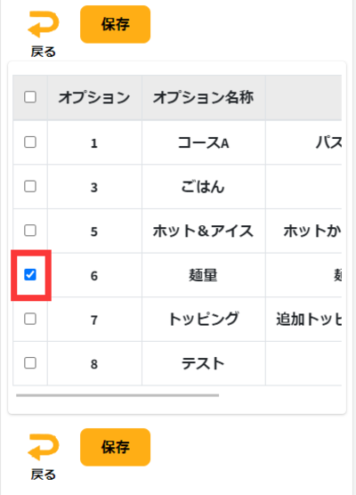 ④「オプションのリスト」を設定してください。チェックしたら必ず保存してください。 注:「オプション」で事前登録する必要があります。