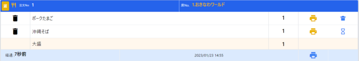 最初に登録された注文は自動的に調理中になります。