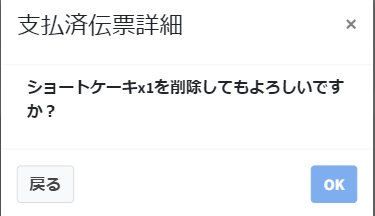 ❹削除アイコンを押した場合は確認のポップアップが表示されますのでOKを押します。