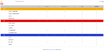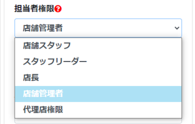 スタッフ、スタッフリーダー、店長、店舗管理者と4つの権限に分かれています。