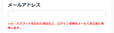 ログインIDやパスワードを忘れた場合や変更する際に使用するためメールアドレスを入力します。