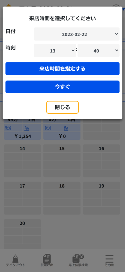 お客様の来店時間を指定することができます。