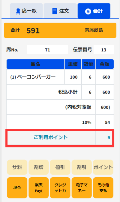 スタッフは会計画面で「ポイント」をタッチしてください。