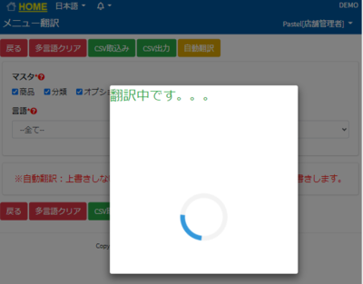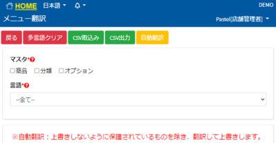 翻訳したいマスタを選択し、自動翻訳を押します。