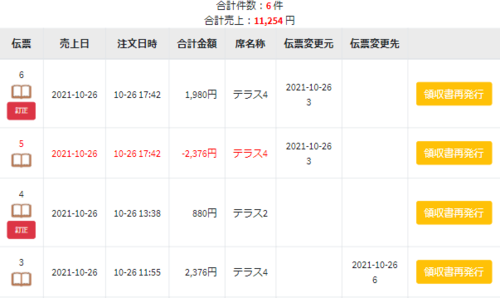 訂正をした場合、現金で返金されたことになりますのでお気を付けください。例えば、PayPayで支払った伝票を訂正した場合、訂正した金額はPayPayではなく現金で返金をしたと記録します。もしPayPayから返金した場合、現金在高が合わなくなる可能性がございます。出来るだけ返金は現金で行うようにして下さい。