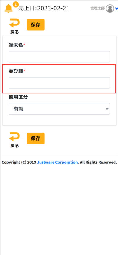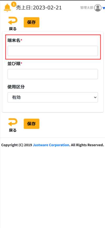④「端末名」に会計端末の名前を入力します。