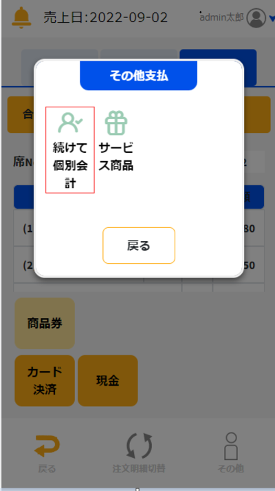 ②表示される画面上の「続けて個別会計に進む」を選択します。