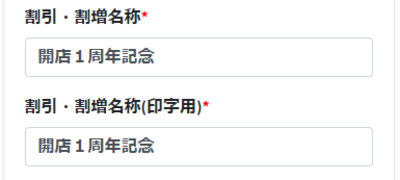 ④「値引・割引名称(印字用)」を入力します。名称を入力すると自動的に下部も入力されます。