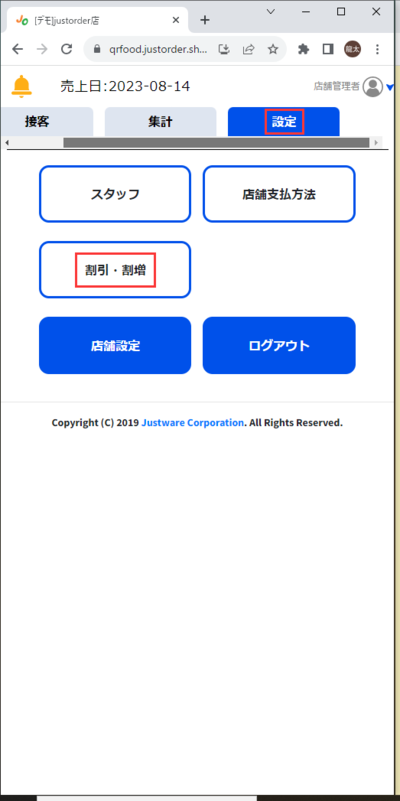「設定」→「割引・割増」をタップします。