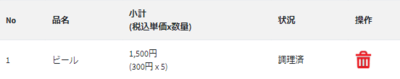 この場合ビール5杯で割引なのでまとめて表示されております。