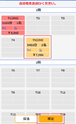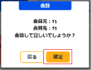 ④合算したいテーブルを選択し「確定」を選択します。