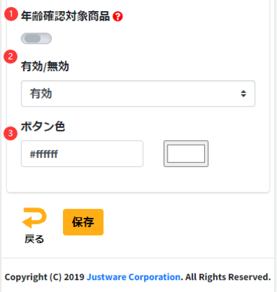 ❶の「年齢確認対象商品」はアルコール類を登録したときONにしてください。