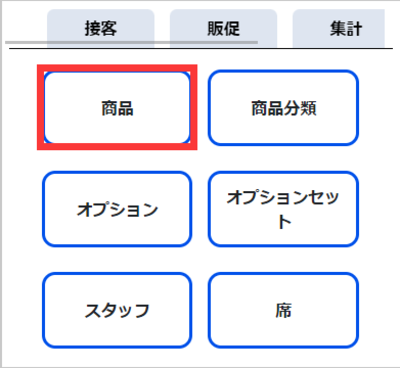 ①設定のタグから「商品」をタッチします。