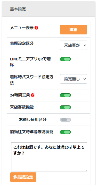 LINEミニアプリで着席するかどうかの設定を行うことができます。