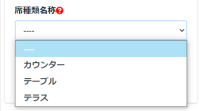 ⑤「席種類名称」を選択してください。 注:「席種類」で先に設定する必要があります。