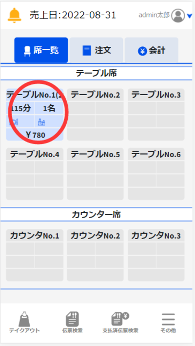 「席処理」画面において「席一覧」タブを選択した状態で操作してください。