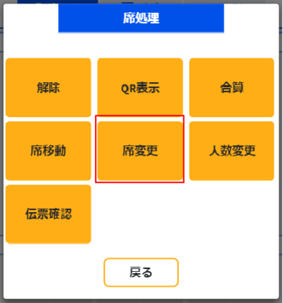 ①「着席状態」の席のうち「席変更」を行いたいテーブルを選択します。