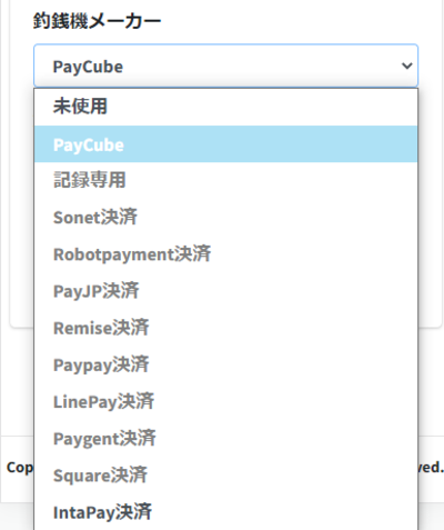 ⑫「釣銭機メーカー」は「PayCube}を選択してください。