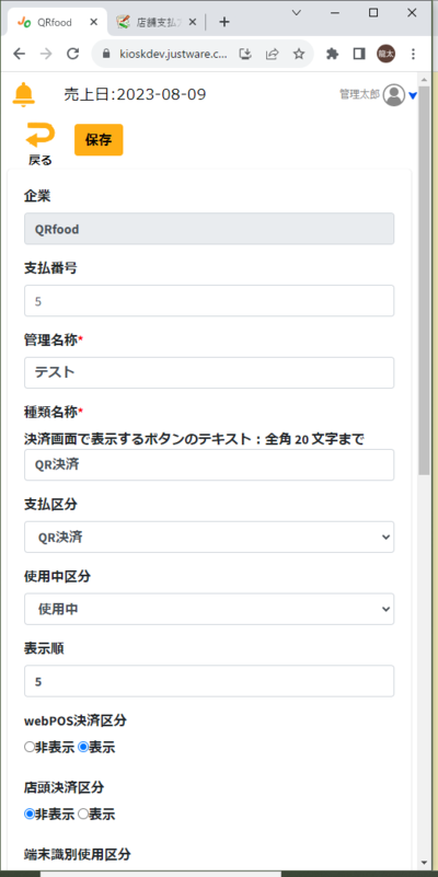 店舗支払方法、会計画面に追加されていることを確認できたら完了です。