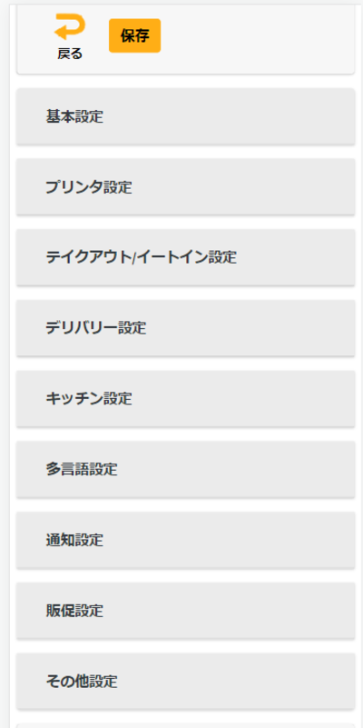 | テイクアウト/イートイン設定 | 「テイクアウト/イートイン」についての設定を行うことができます。詳しくはこちら |