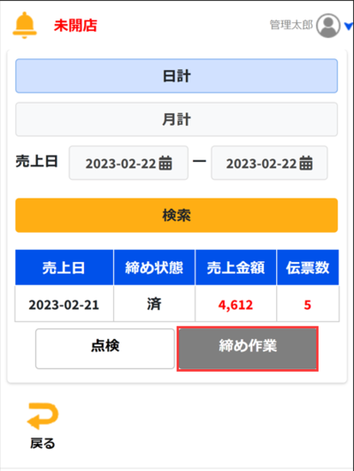 「締め作業」をタッチしてください。