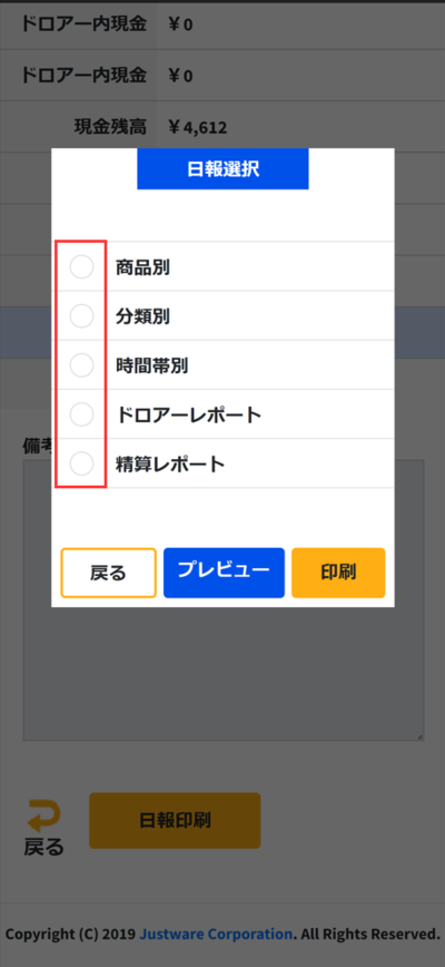 印刷したい日報を選択して印刷をタッチしてください。