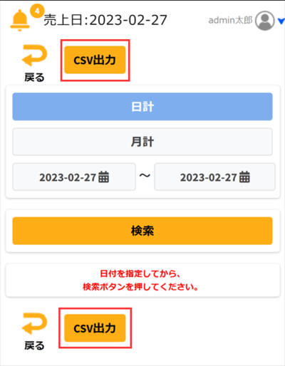 日次売上と月次売上を確認することができます。