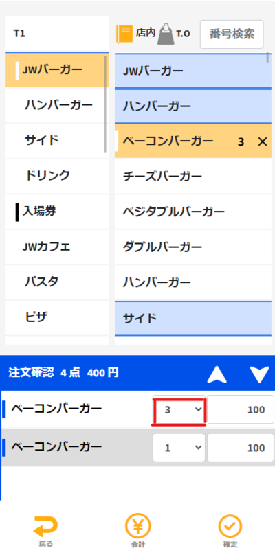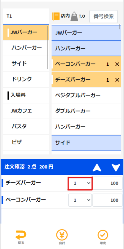 ・注文追加 ・注文取消 ・テイクアウト