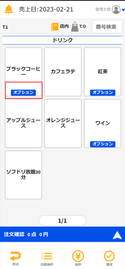 ②お客様に注文を聞く際に伺って選択してください。選択したら「追加」をタッチしてください。