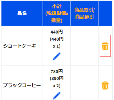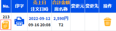 ❷返金したい伝票を検索します。全取消(ゴミ箱ボタン)を押します。