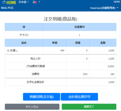 JustOrderと連動していない他社レジを使用している場合はJustOrder上で精算完了にする必要がありますので