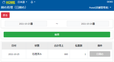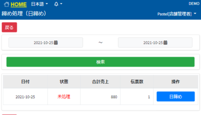 現金の枚数を入力し間違いがなければ日締めを実施します。