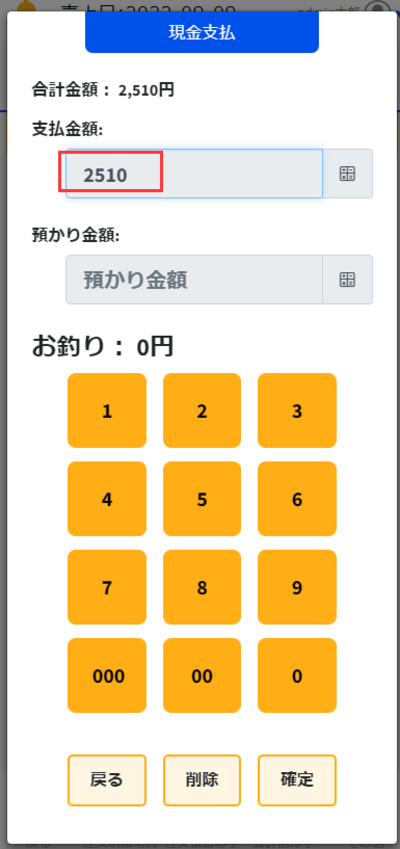 預かり金額にも1000円と入力し確定ボタンを押します。