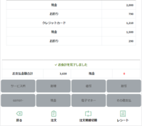 1人づつ支払いたい金額を入力し、すべて会計完了しますとこのような画面になります。
