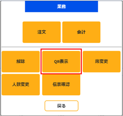 ・着席 ・解除 ・QR表示 ・合算 ・席移動 ・席変更 ・人数変更 ・伝票確認 ・その他