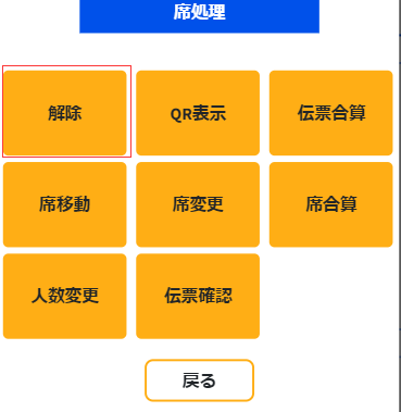 ①「着席状態」で「解除」をしたいテーブルを選択