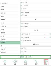 注文を追加したい席を選択しますとそのままメニュー画面に遷移します。