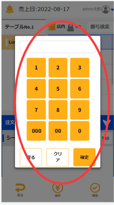 商品の金額を変更したい場合には「注文」タブが選択されている状態であることを確認して変更したいテーブルを押します。