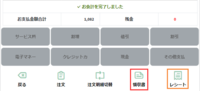 会計完了しますと画面下部のアイコンが切り替わります。 領収書を発行したい場合は赤枠のアイコンを押します。 合計金額のデフォルト値が入っています。 領収書を分けて出したい場合は金額を変更して下さい。 ※合計金額以上の領収書は発行出来ません。 もし発行しようとした場合はこのようなエラーが表示されます。
