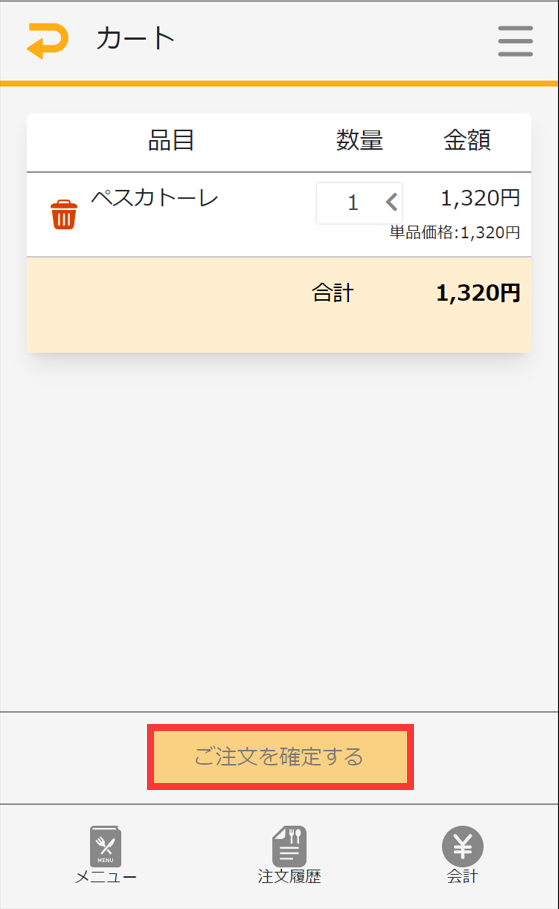 注文から会計までの流れ