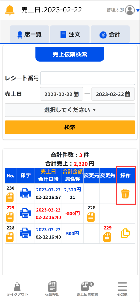 売上伝票検索