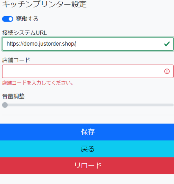 上記の「 プリンタサーバー管理画面でプリンターの上書き登録 」をした場合、JustOrder内で設定を変更する必要はありません。