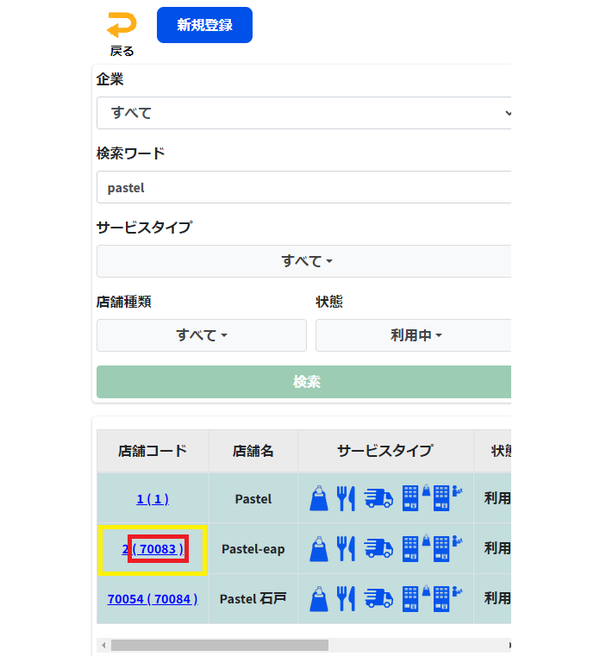 ⑧自分の店舗を見つけ、店舗コードを確認してください。