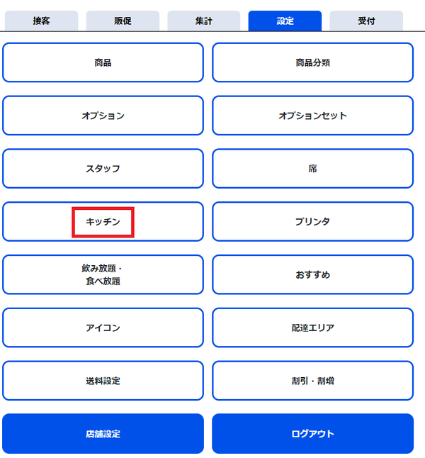 キッチン設定画面