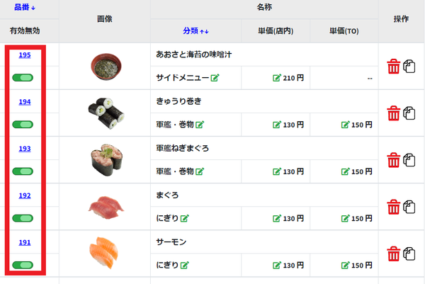 ⑤「設定」→「商品」→対象の商品の番号をタップしてください。
