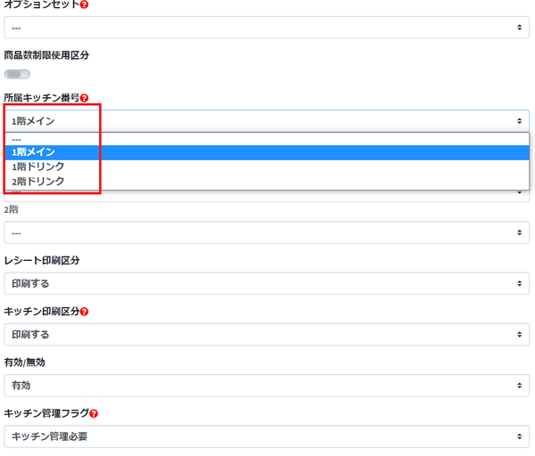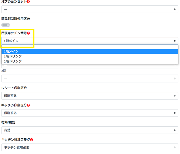 ①「プリンタサーバー管理画面」に移動→「キッチン設定画面へ」→設定したいプリンタの番号と色を確認してください。そもそも表示されていない場合もこのまま進めてください。