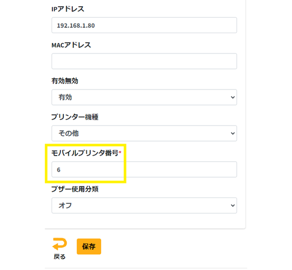 (※このIDは後にJustOrder内のプリンタ設定で「モバイルプリンタ番号」に入力するものです。)