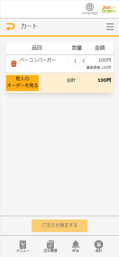 ⑥カートに注文したい商品を追加後「ご注文を確定する」を選択すると確認メッセージが出てきます。